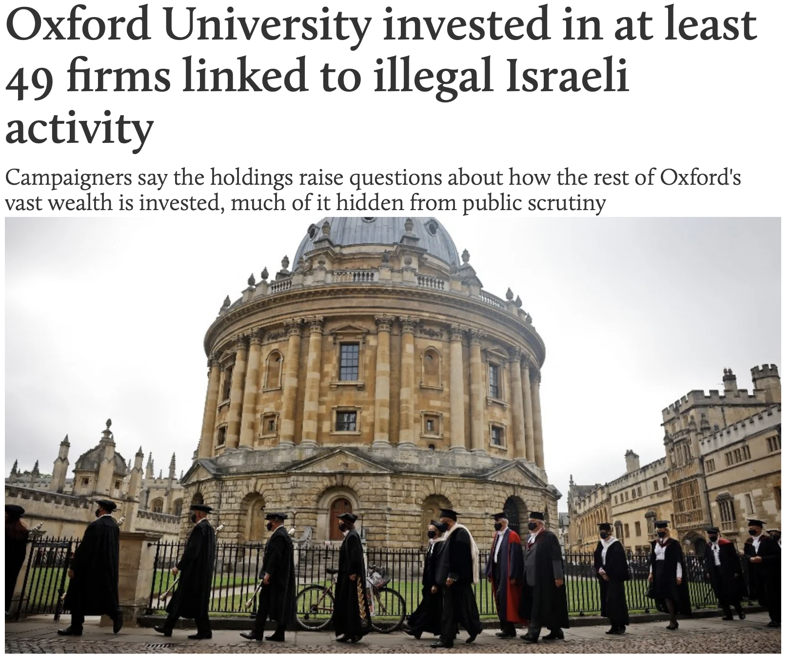 MEE: Oxford’s investments in illegal Israeli activity
